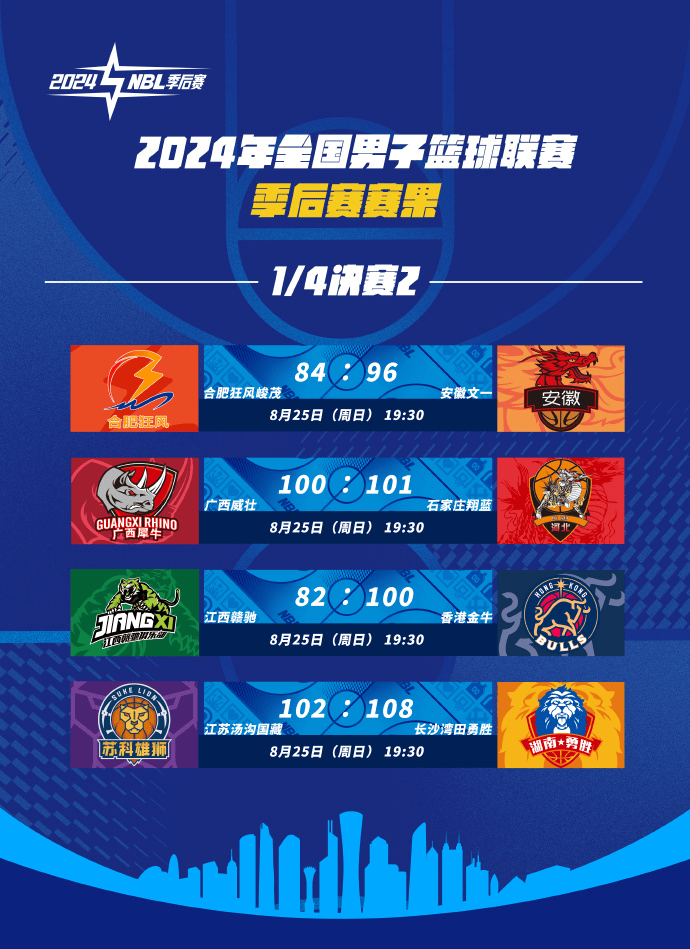 NBL联赛四分之一决赛今日赛果:广西威壮不敌石家庄翔蓝
