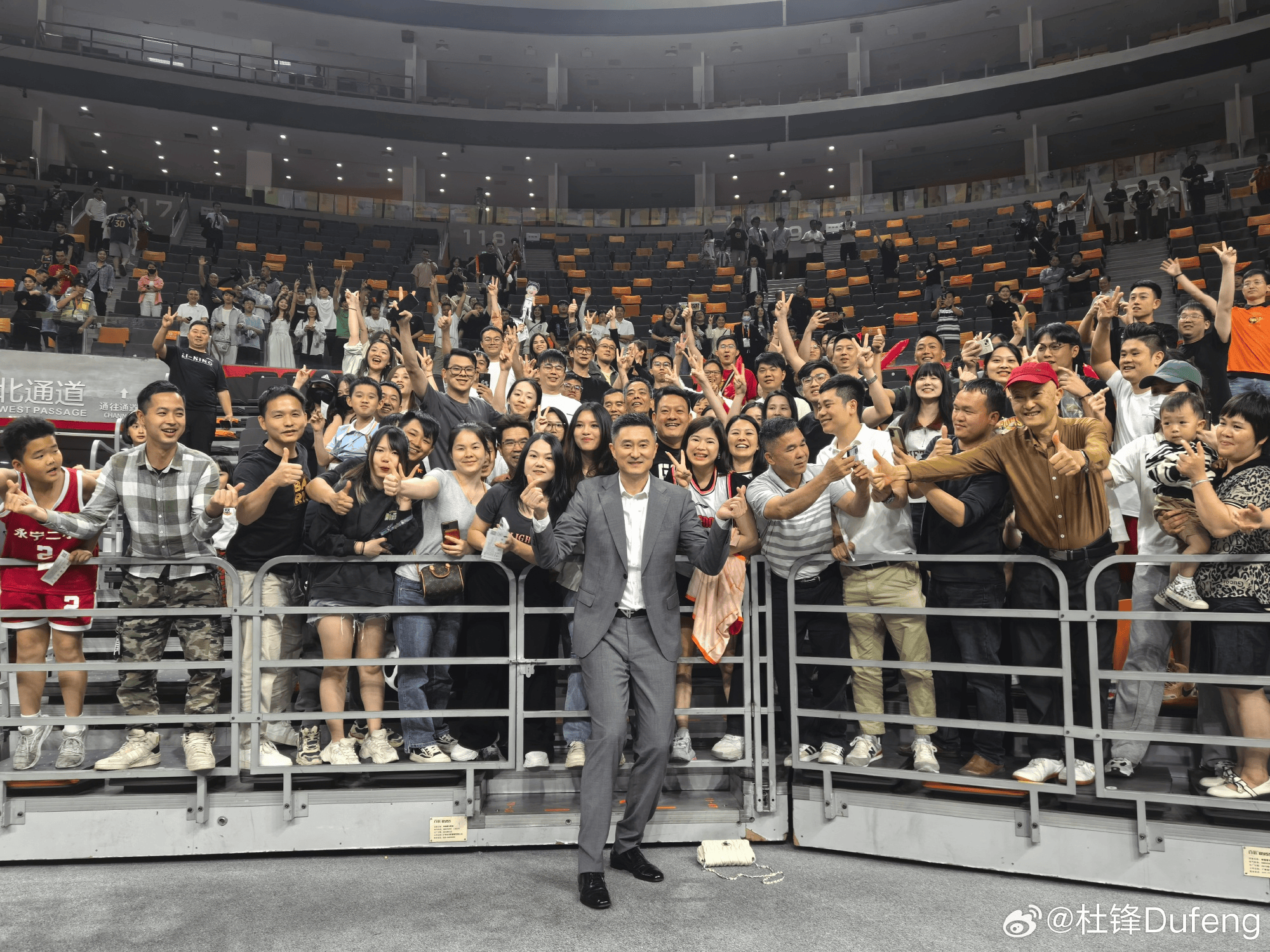 广东队主教练杜锋社媒分享赛后与球迷合照:感谢大家的支持