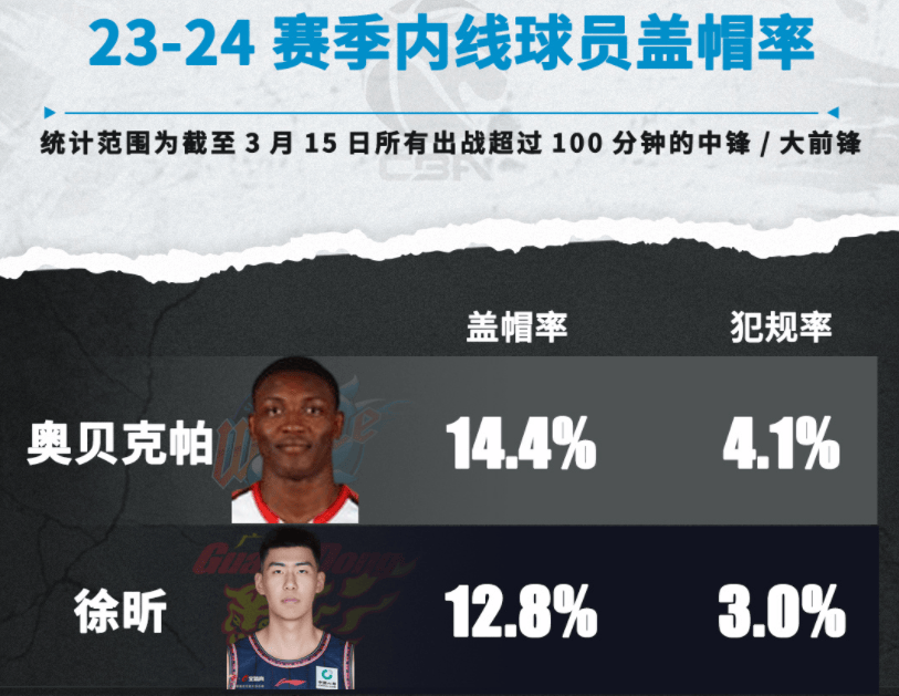 未来可期!徐昕的盖帽率联盟顶级,犯规率在中锋里第二低
