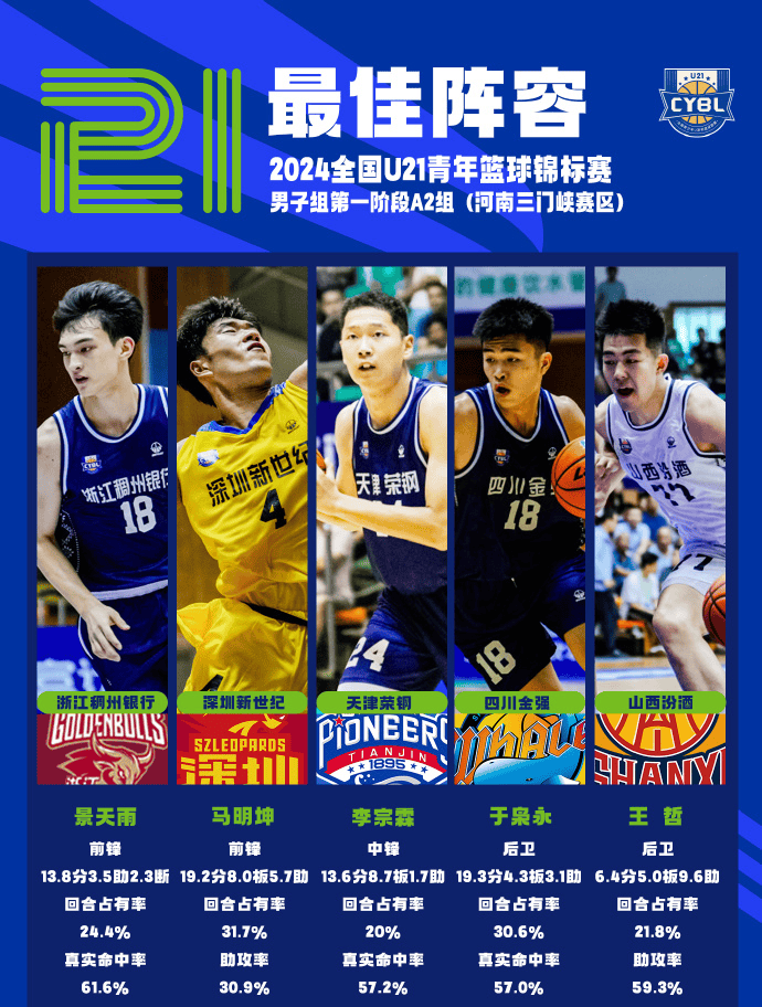 全国U21男子组第一阶段A2组最佳阵容公布:马明坤在列