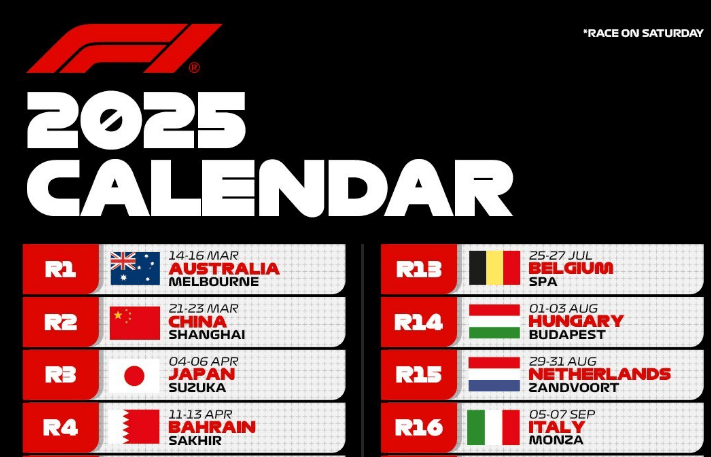 F1官方发布2025赛季赛历:中国站将于3月21-23日进行