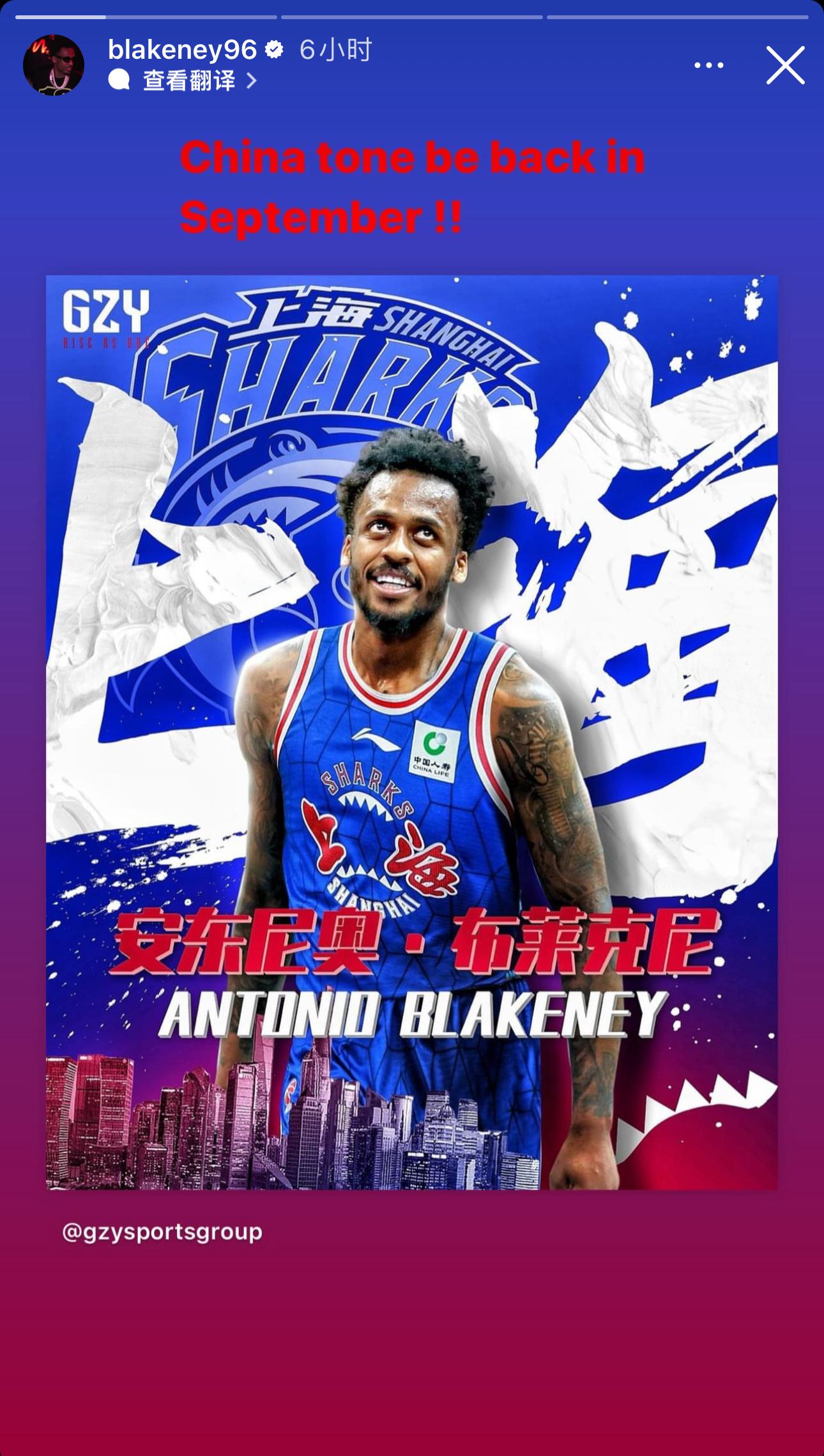 加盟上海!外籍球员布莱克尼社媒分享身穿上海队球衣海报