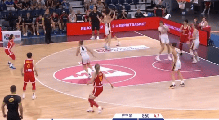 [女篮热身赛]德莱尔轻松上反篮打进,中国队落后23分