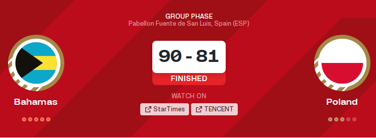 奥运落选赛:巴哈马90-81波兰,希尔德17分6板10助 艾顿18分
