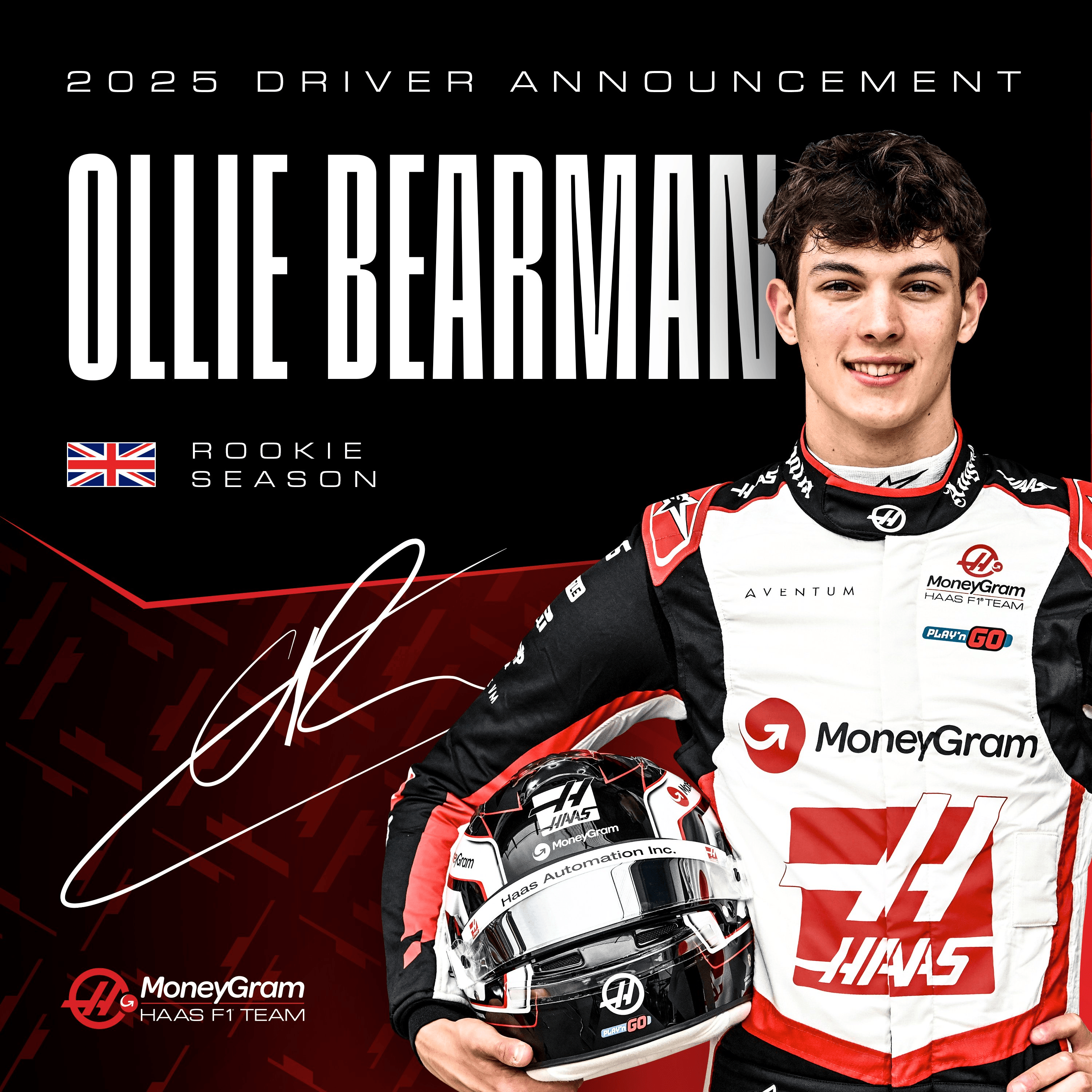 F1哈斯车队官方:贝尔曼2025年成为正式车手,签订多年合同