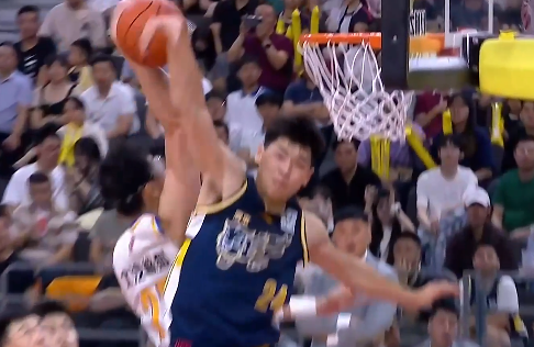 崔永熙迎着周琦拉杆反篮打进,随后又飞身残暴大帽周琦