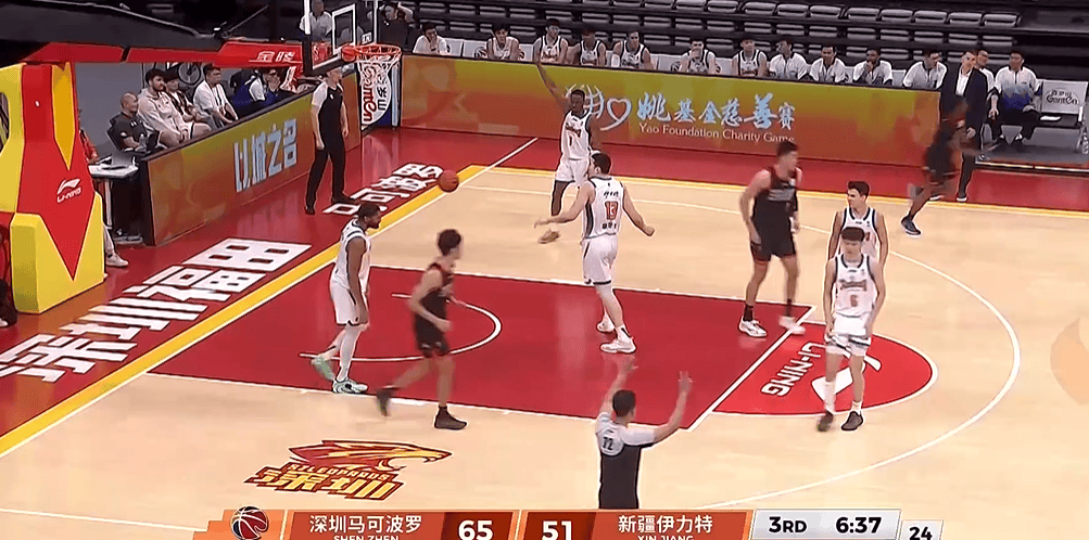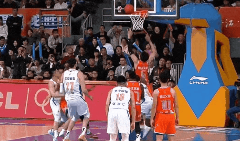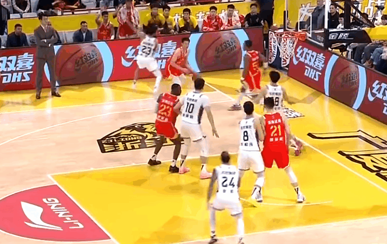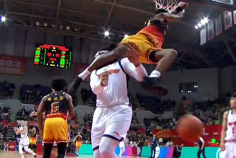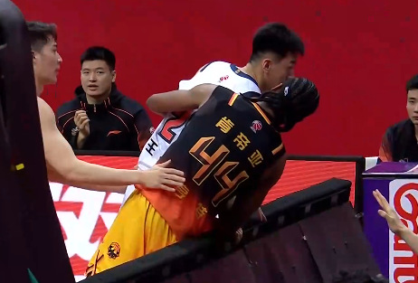 亨特身后抱住王少杰下手犯规,随后裁判吹罚违体犯规