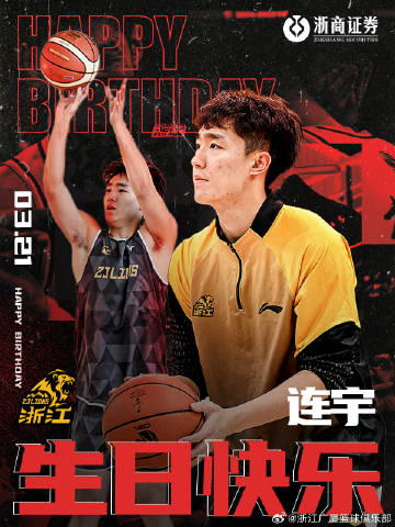 广厦男篮社媒分享生日海报:祝小将连宇生日快乐,早日康复