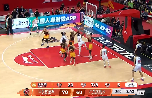 庞峥麟扛着防守抛投打进砍下20分,江苏再领先广东10分