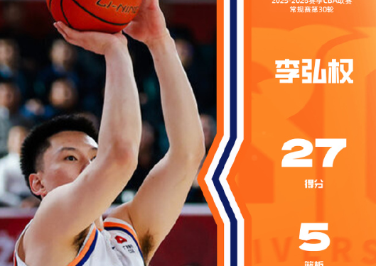 神射手!李弘权出战20分钟,投篮11中8、三分9中7砍下27分