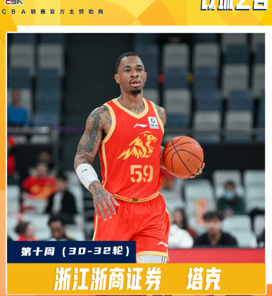 CBA官方:广厦外援塔克当选常规赛第十周周最佳球员