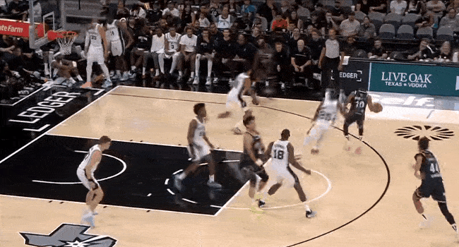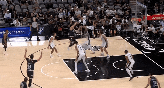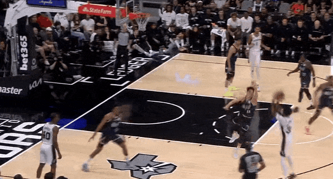 马刺尚帕尼三分不中,凯尔登-约翰逊抢下篮板补篮打成2+1