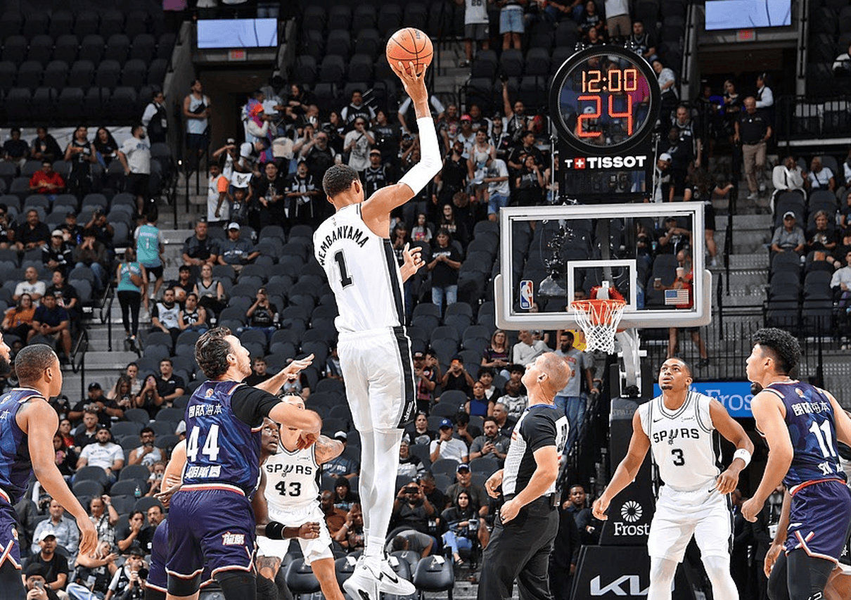 NBA季前赛:文班亚马6分8板3助,马刺首节12分领先广州男篮