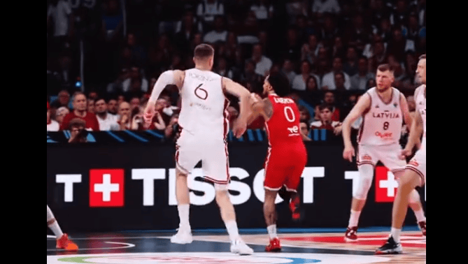 FIBA分享欧洲杯片段:经典小打大,这次背景板是波尔津吉斯