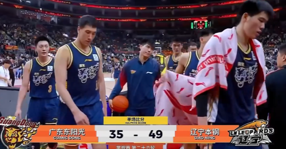 CBA常规赛:辽宁半场49-35领先广东,付豪15分、萨姆纳16分