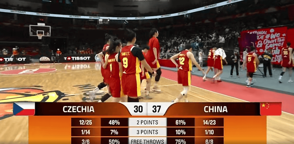 张曼曼投进中国本场首个三分,中国女篮目前领先捷克10分