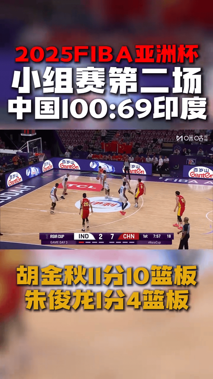 男篮亚洲杯:中国首节29-14印度,胡明轩8分&全队三分7中5