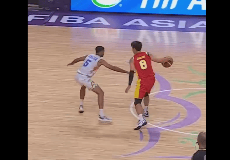 胡明轩三分干拔造成对手犯规,随后三罚全中拿到中国队首分