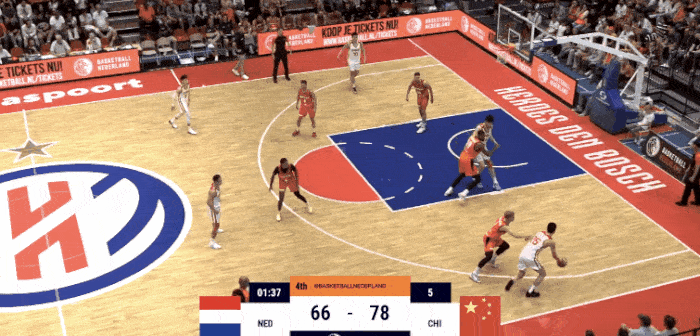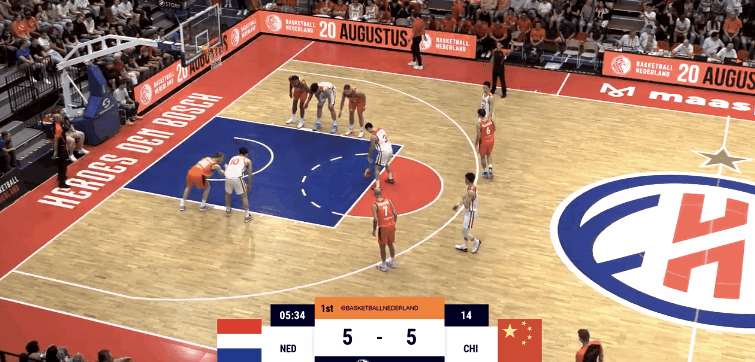 胡明轩突破造犯规两罚全中,中国男篮6-5领先荷兰1分