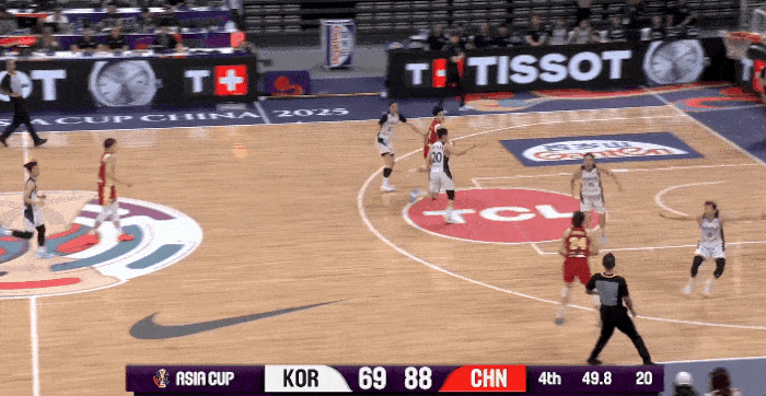 杨力维突破传球假动作晃飞防守,轻松上篮打进领先韩国15分