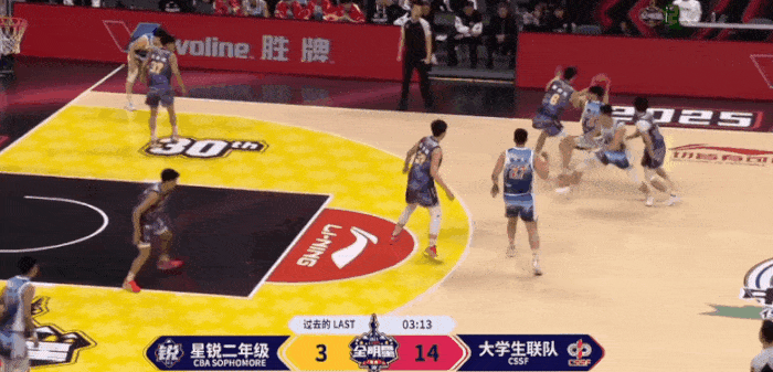 曹芷豪中距离急停跳投命中,大学生联队一波18-3反超二年级