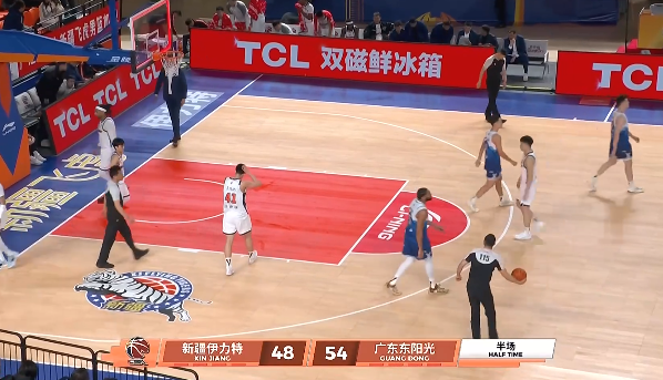 CBA常规赛:胡明轩8分&冯傲9分,广东半场54-48领先新疆