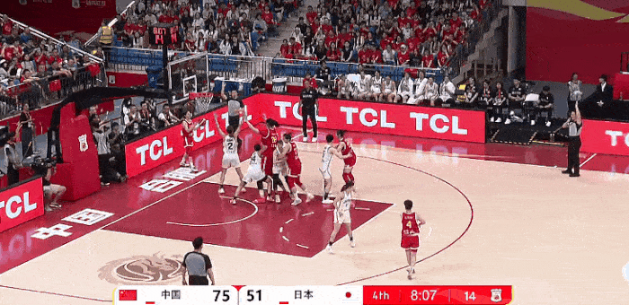 中日热身赛:张子宇次节2分钟拿6分,目前5分钟砍下12分3板