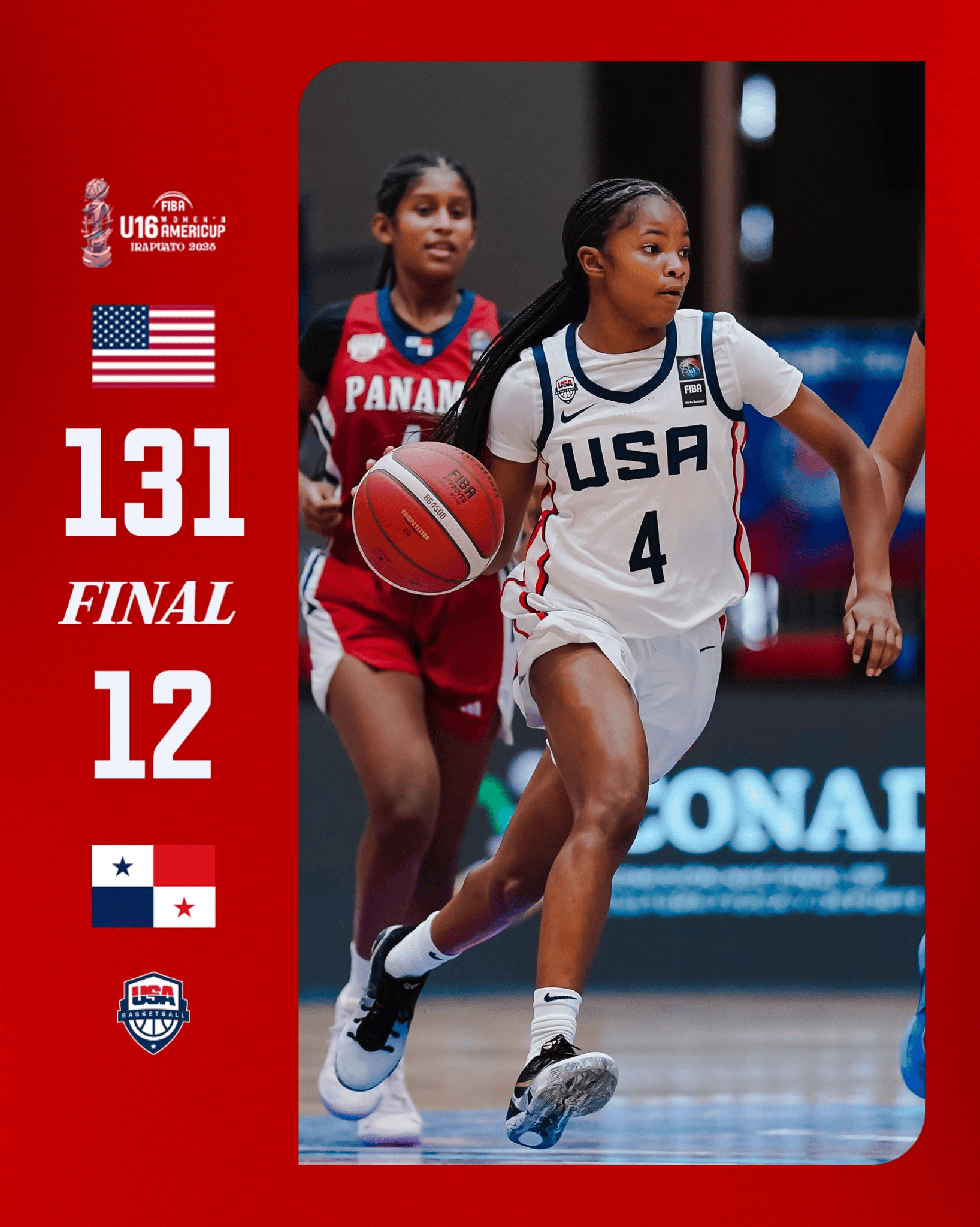炸鱼!美国U16女篮狂胜巴拿马119分,单节轰出48-2和25-0