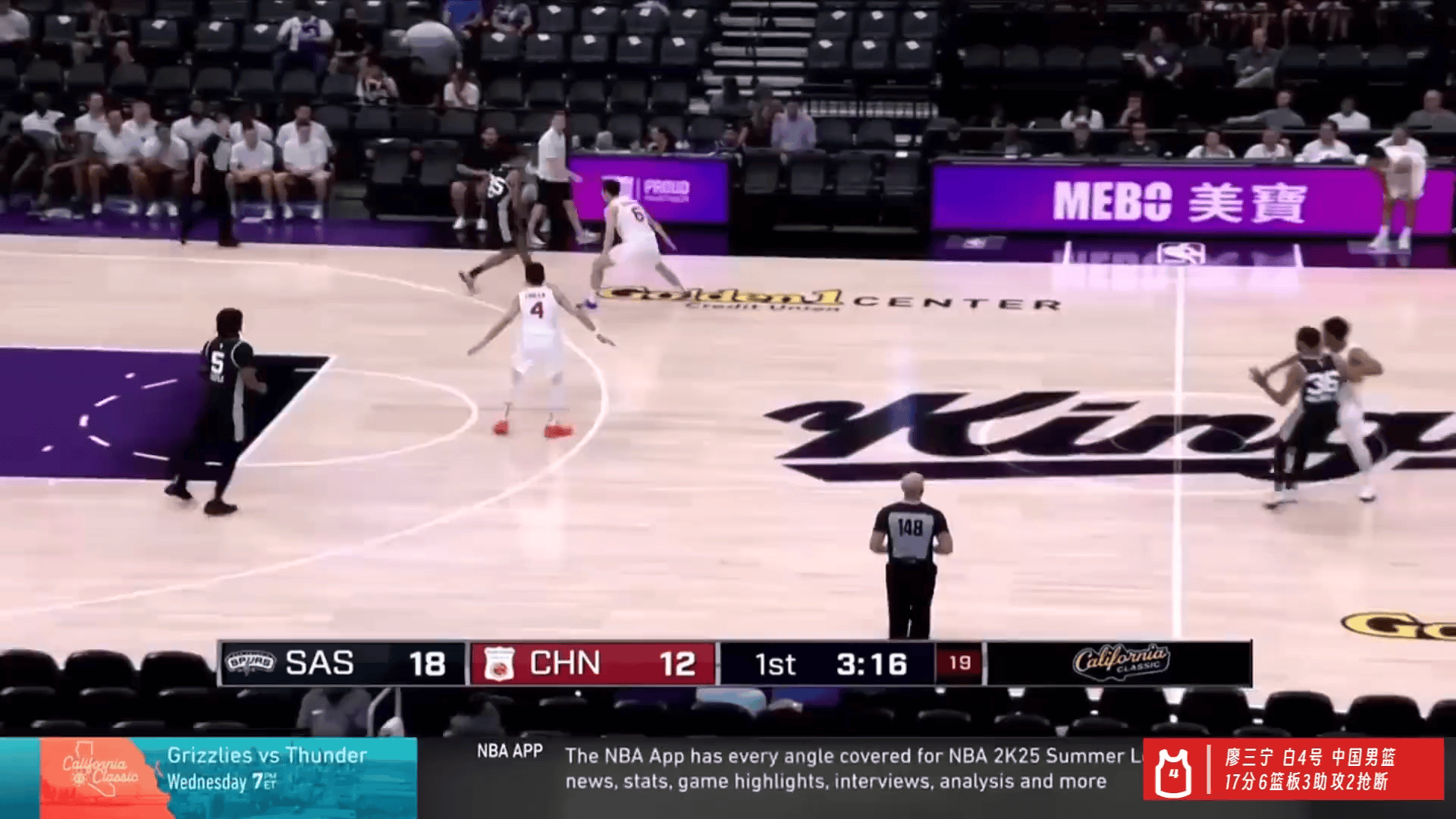 [视频回顾]廖三宁17分6篮板3助攻,中国队不敌马刺队