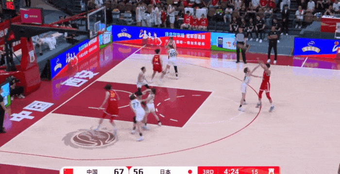 张子宇分球底角队友三分不中,随后又轻松摘前场板补篮打进