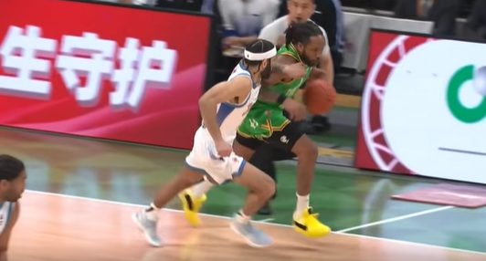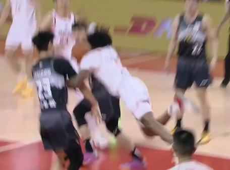 古德温突破被栾利程身后直接拉倒,裁判吹罚后者违体犯规