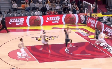 陈家政先是上篮不中涮框而出,下回合快攻选择脑后传球助攻