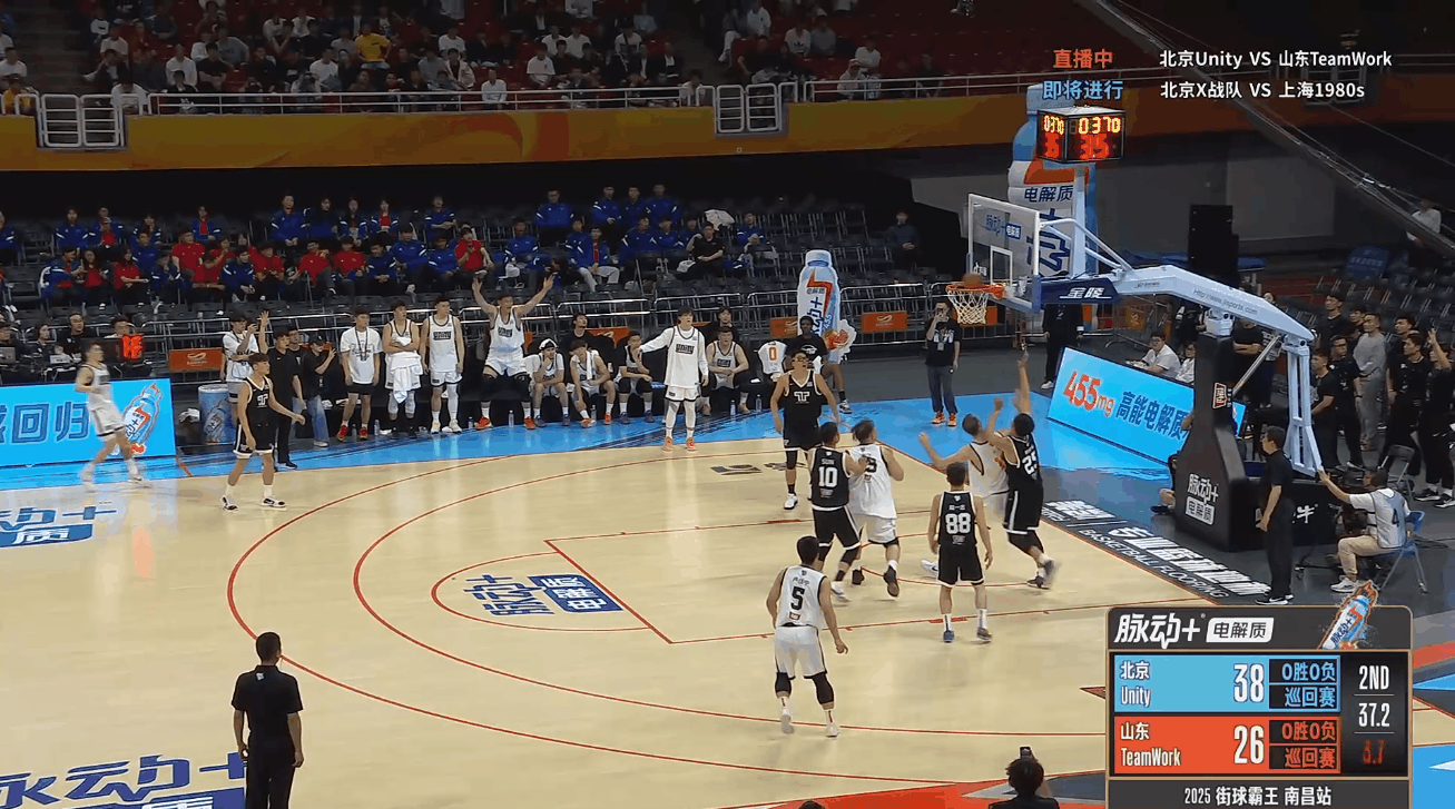 街球霸王:张凯飞抢到二次篮板打进,北京Unity暂时领先14分