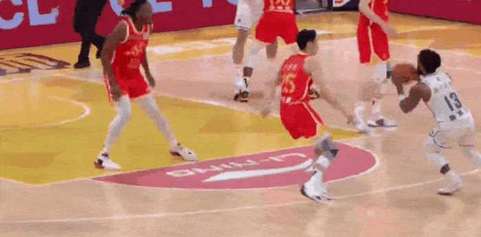 周琦转身上篮造成刘传兴6犯,但因肘击到刘传兴面部被吹违体