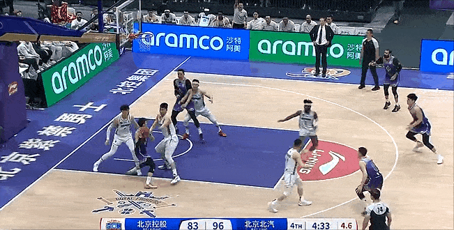 杰曼弧顶单挑张帆撤步命中超远压哨三分,北京半场领先6分