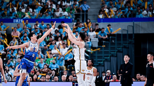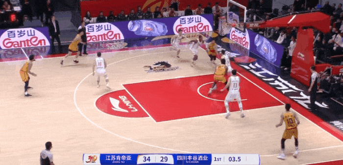 火力全开!倪永康底角三分压哨命中,江苏首节37-29领先四川