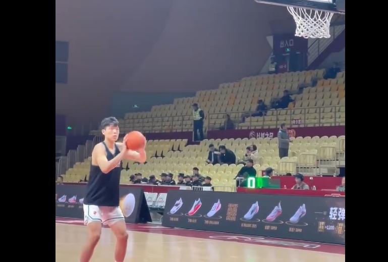 针对性训练!青岛男篮杨瀚森赛前热身加练罚球片段