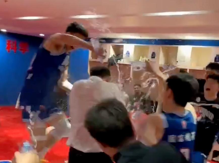 虎扑独家:青岛队主帅刘维伟赛后被球员疯狂泼水庆祝