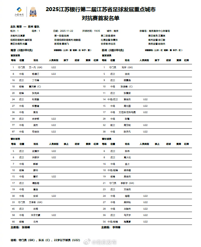 南京vs苏州首发:凌杰PK张凌峰,滕帅、吉翔、寇程替补