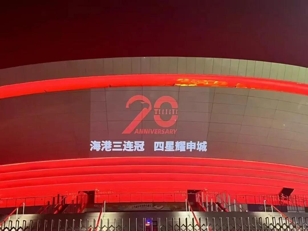 海港夺冠当晚白玉碗球场外场灯光:海港三连冠,四星耀申城