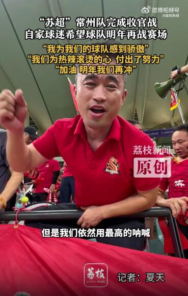 常州球迷喊话球队:我为我们的球队感到骄傲,明年再冲