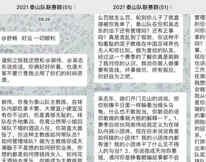 深入聊聊:前泰山队领队舒畅微信怒怼郝伟!怼到热搜