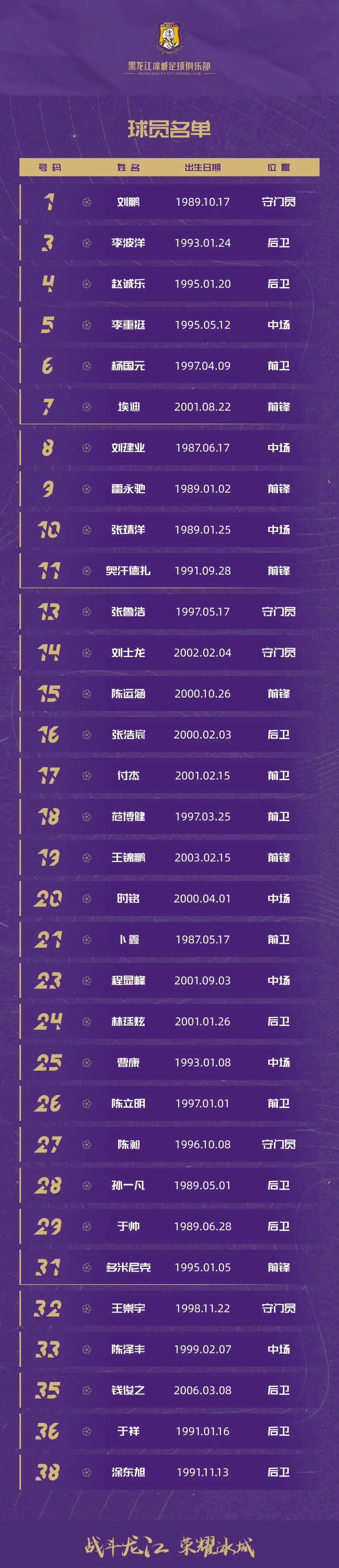 黑龙江冰城一线队大名单公布:刘建业领衔,卜鑫等新援在列