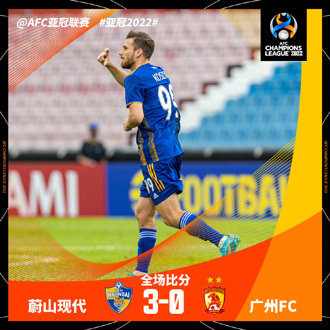 蔚山vs广州半场数据:广州队控球率仅17%,射门比16-2