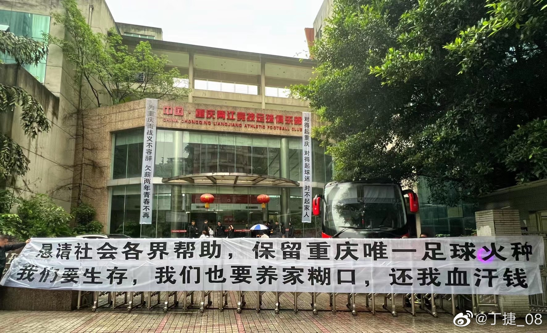 重庆俱乐部大门口新标语:保留重庆足球火种,还我血汗钱