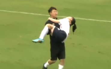 不专业这块中国足球很专业!女超球员受伤没担架被抱下场
