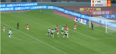 武汉队左侧角球开到禁区里,栗鹏头球完成破门