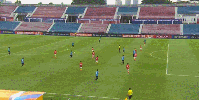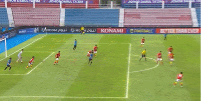 川崎前锋中路传球到禁区左侧,宫城天插上轻松推射破门