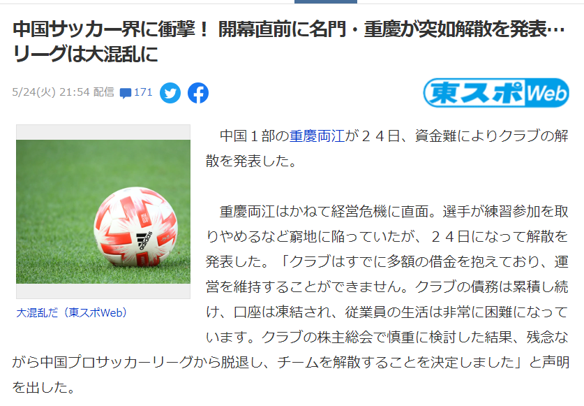 日网友评重庆解散:若还用名不副实的球员,就无法触底反弹
