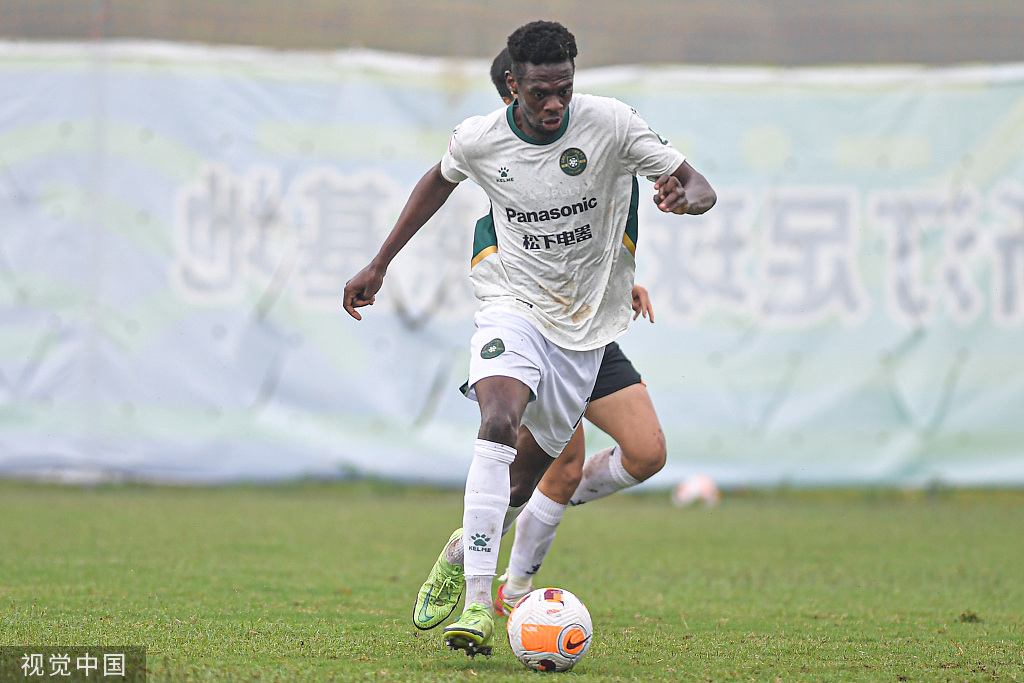 晋鹏翔禁区外远射,变线后弹进球门